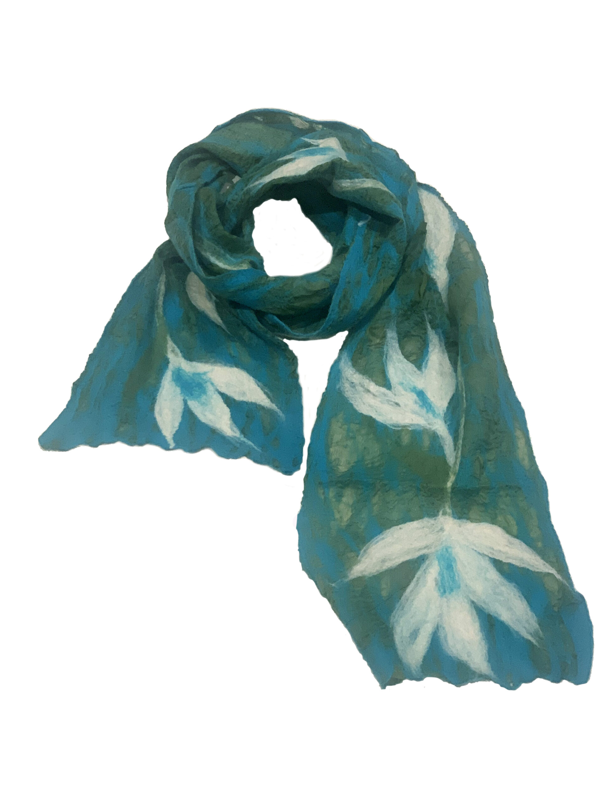 Lili betekent Lelie in het Nepalees. De sjaal is gemaakt van merinoswol in combinatie met zijde en is hierdoor heerlijk zacht en soepel. De basis is groene zijden met ofwhite, turquoise en groene motieven.